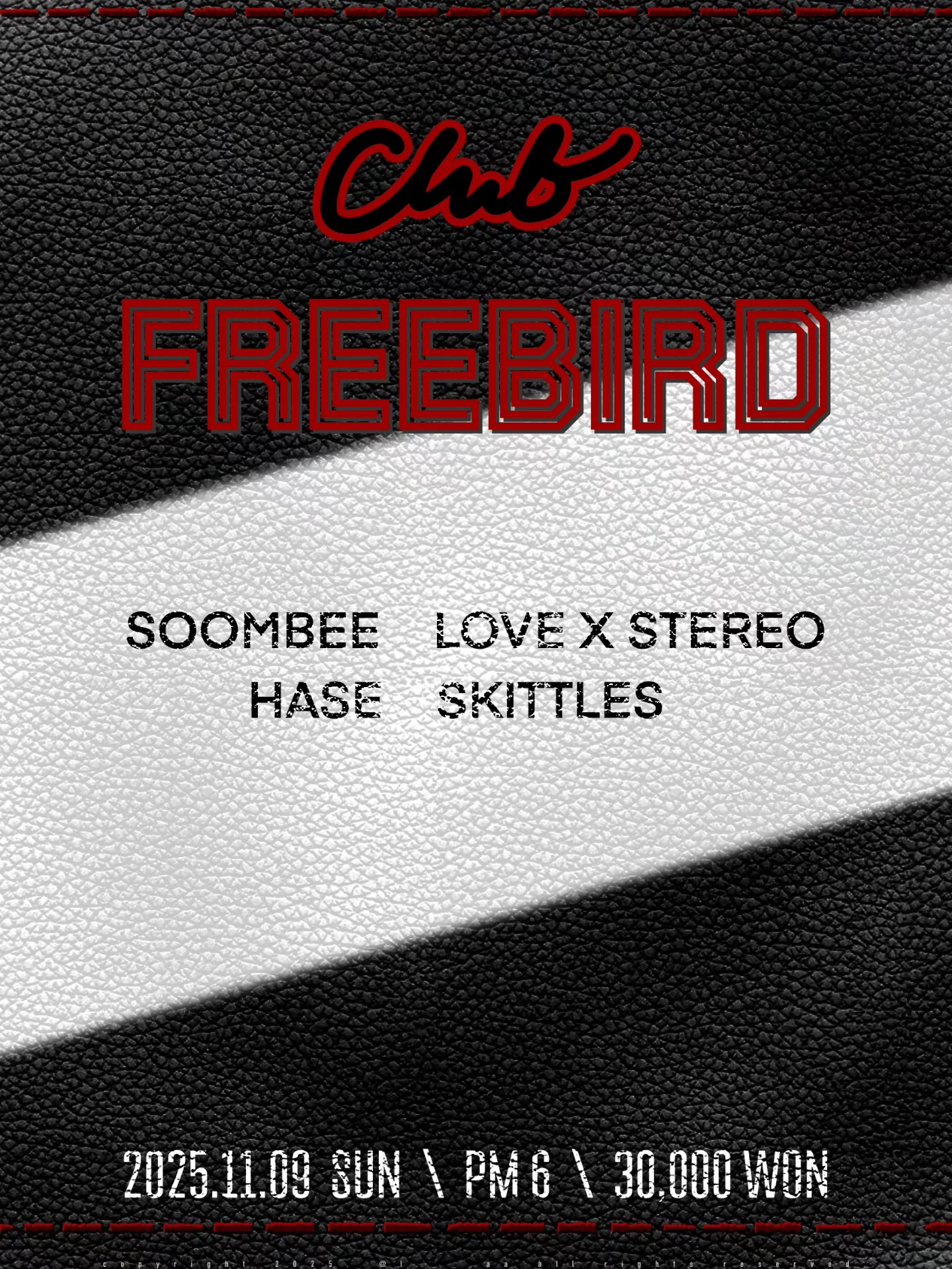 CLUB FREEBIRD LIVE.폴리아모리의 건강이슈로.(쾌유를 바랍니다.)러브엑스테레오가 새로 합류하였습니다.11/09 SUN PM618:00 DOOR OPEN18:20 스키틀즈 @skittles_band19:00 러브엑스테레오 @lovexstereo19:40 숨비 @soomb_ee20:20 하즈 @band.hase 일시 : 11월 9일일요일 18시(입장.) 장소 : 클럽 프리버드(서울시 마포구 와우산로17길 19-22/Mapo-gu Wausan-ro 17gil, 19-22 B1) 입장료 - 30,000원(Only Door)티켓팅은 현장판매만 진행합니다. 입장전 선입금 가능(단, 입금순서는 입장순서와 관계 없습니다.)- 선입금계좌 국민 032902-04-329607 유신홍(프리버드)입장시 선호하시는 아티스트를 카운팅합니다.- 이때 선호하시는 아티스트를 지명하실수도 있고, 복수선택(2픽한정.)도 가능합니다.[프리버드는 정산수익은 관객 지명으로 60% + 나머지 40%를 참여 아티스트분들께 1/N으로 정산드립니다.] 입장은 공연전 20분 전부터 진행합니다....